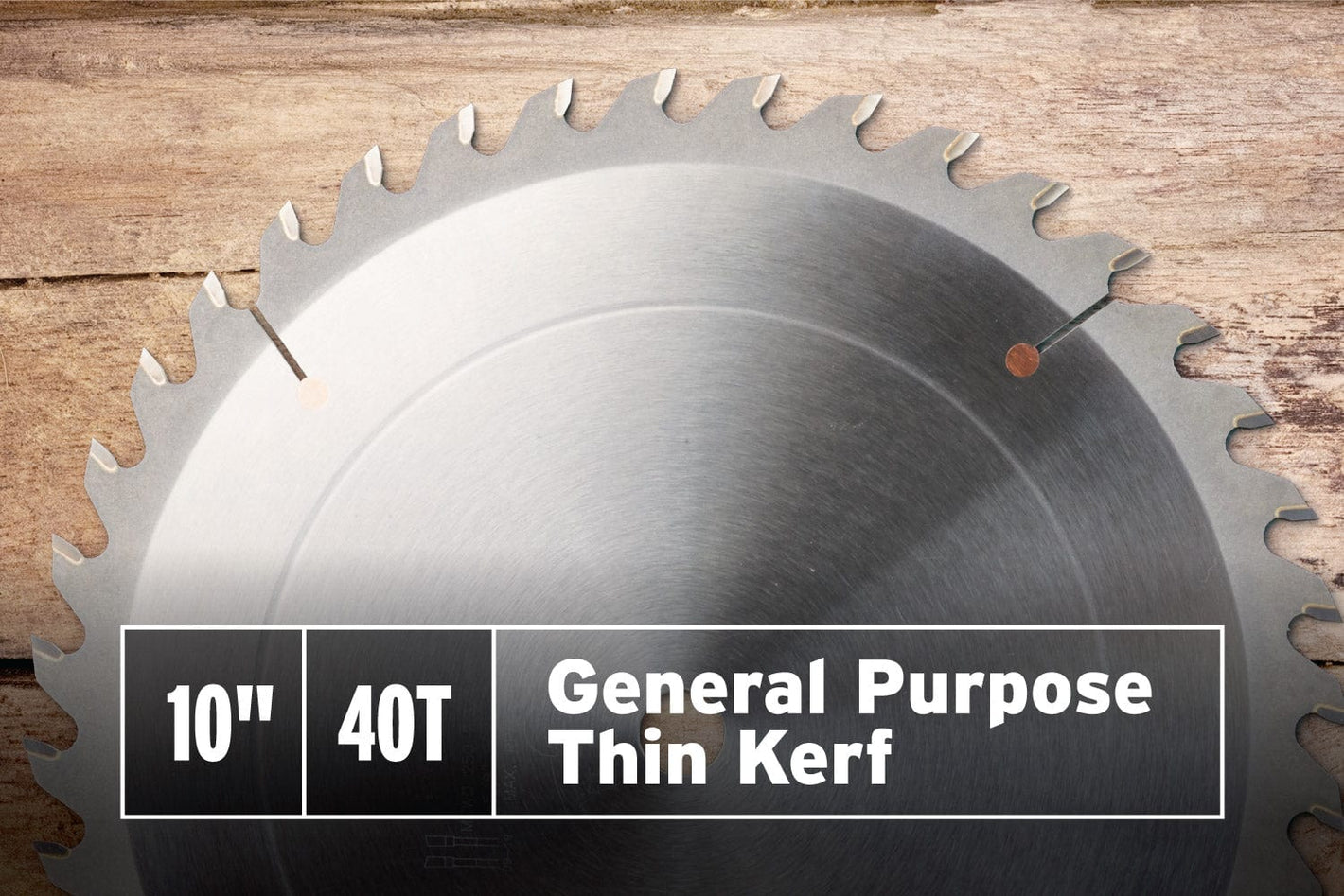 • A thin kerf saw blade removes less material when cutting. Use a thin kerf blade to optimize the performance of saws with less power. Alternate Top Bevel tooth configuration set with a 15° hook angle and large gullets clear away wood efficiently for great rips or crosscuts.