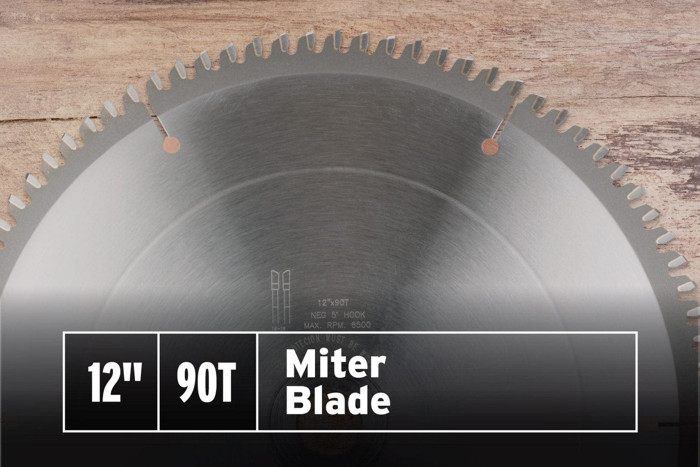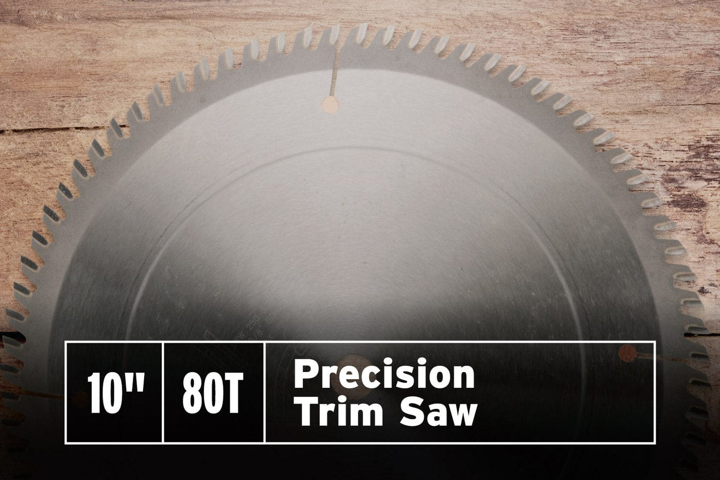 • Triple Chip Grind tooth configuration has a lead tooth with 45° degree corner bevels followed by a slightly lower square tooth that cleans up the corner pieces left behind. This blade will give you beautiful, clean, glue-ready cuts in material 1" or less.