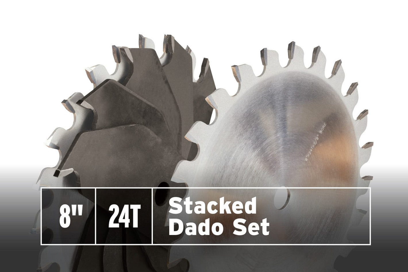 • Hi Alternate Top Bevel tooth configuration set with a negative 6° hook angle scores both edges of a dado before cleaning out the bulk leaving clean 1/4" to 61/64" grooves. Dado cuts across the grain or grooves with the grain.