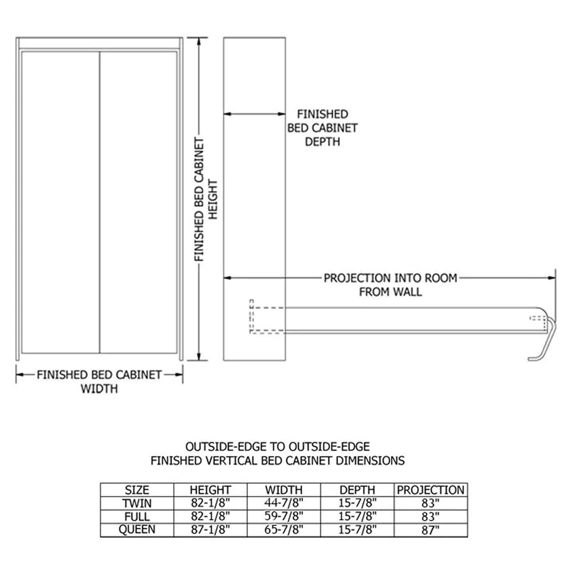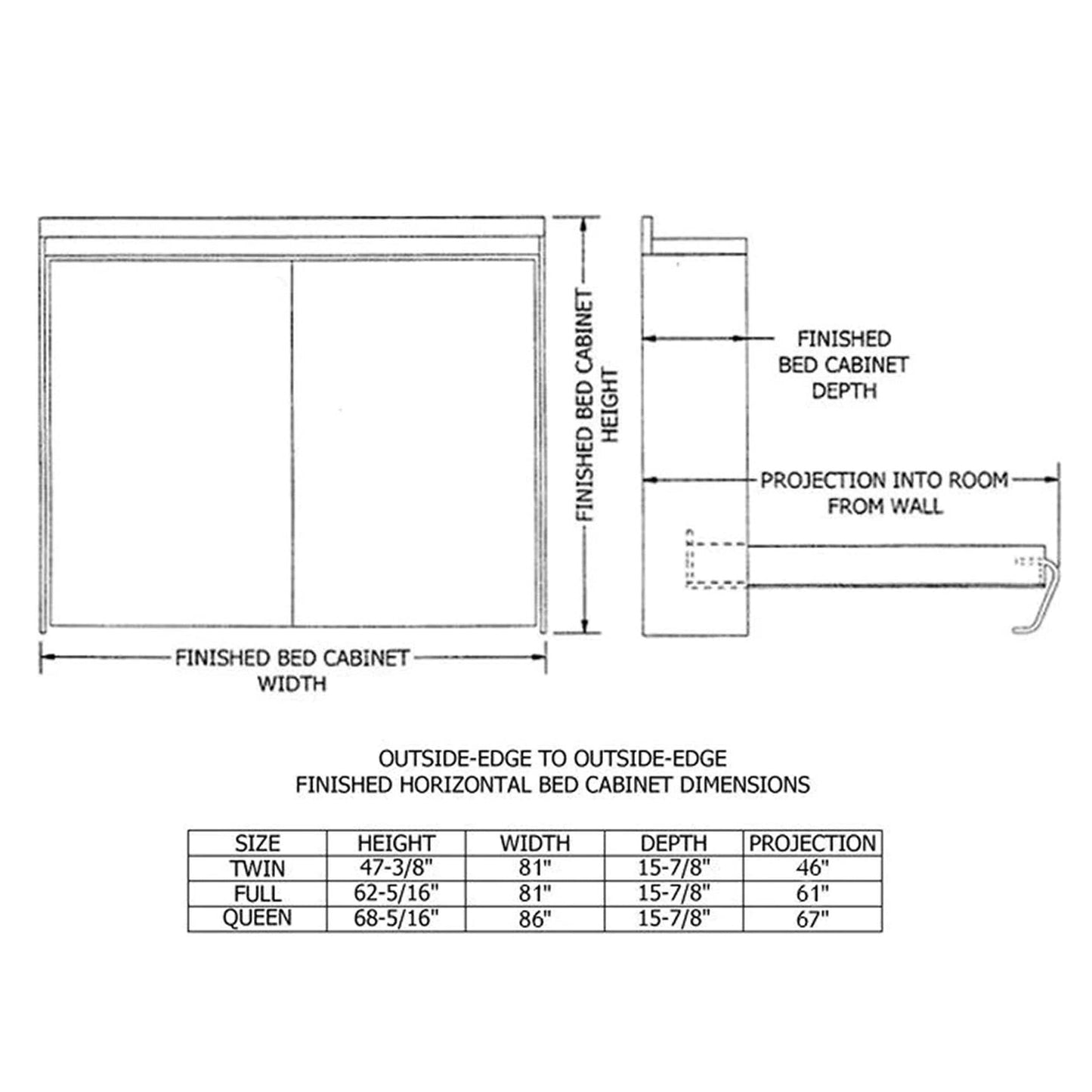 - Finished Horizontal Cabinet Dimensions (Bed Down): 62-5/16" H x 81" W x 15-7/8" D
