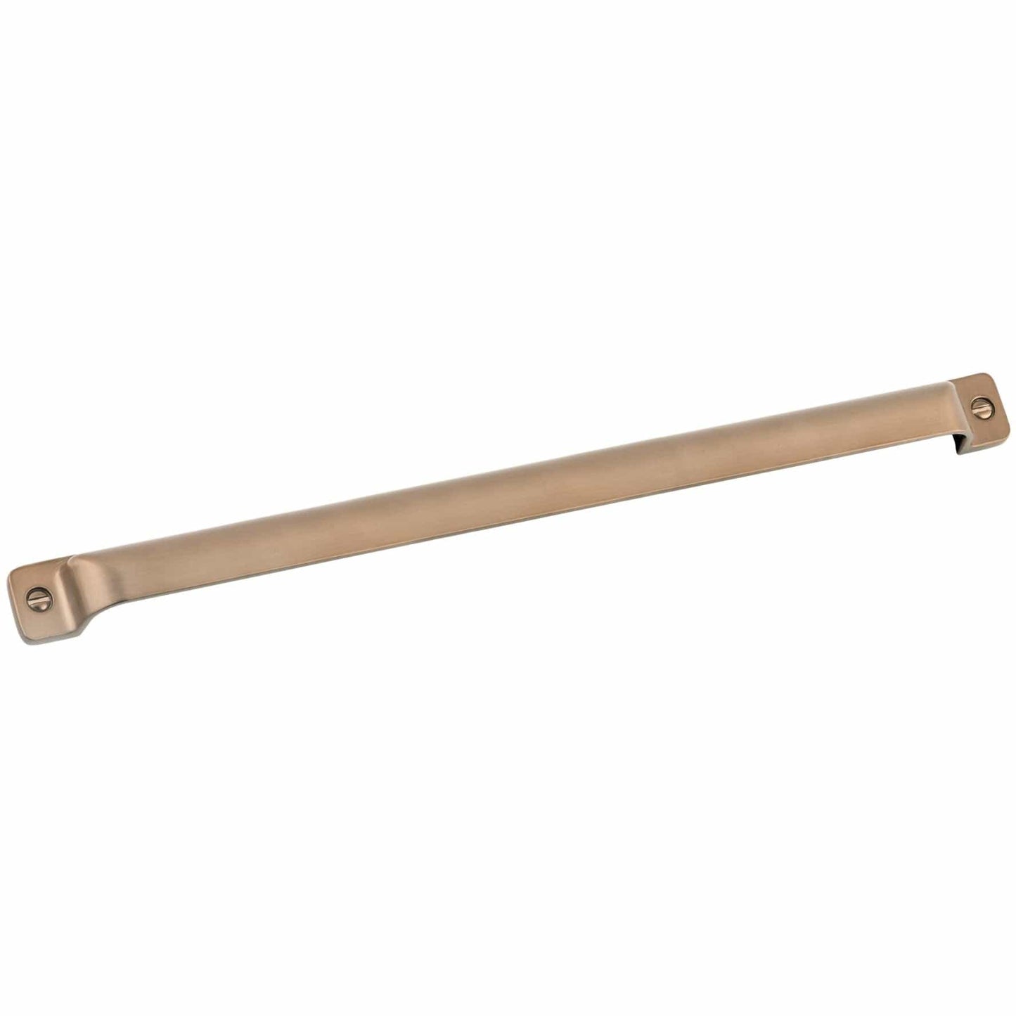 This rectangular cup pull from Richelieu Hardware with faux screw embellishments is available in a variety of lengths and trendy finishes.