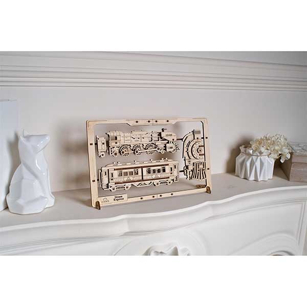 The UGears Steam Express, part of UGears line of 2.5D mechanical puzzles, is a fun, dynamic alternative to traditional jigsaw puzzles. They are like flattened 3D models, meant for static display but with a twist—they have movable parts. This cool wooden train model is contained within a frame, suitable for hanging on a wall or displaying on a desk or shelf. It’s a fun, dynamic alternative to traditional jigsaw puzzles.
